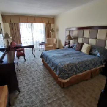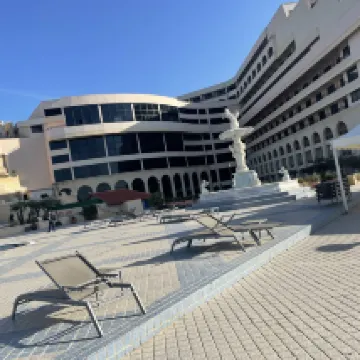 While the hotel has certainly seen better days, we still enjoyed a comfortable 3-day stay. We were looking for a location close to the city's main attractions and a nice outdoor pool, and the hotel delivered perfectly on both counts. The hotel's private beach option is also a big plus, and the overall poolside service was excellent. Our room was spacious – I believe it would also be ideal for extended stays – with ample storage, a comfortable desk, an armchair, a table, and a balcony furnished with a table and chairs. The room's excellent soundproofing was particularly important to us.