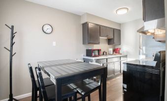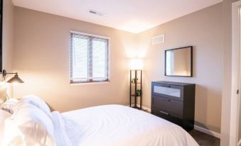 BLACK STRAT, aptly named for its monochromatic interiors, is a cozy 1BD apartment that is centrally located in the East Peoria area, right by ICC and is chock full with amenities! Conveniently located 10 MINS away from DT Peoria and East Peoria, this unit is perfect for travelers and workers coming to the area. The unit is equipped with a fully furnished kitchen, bathroom, bedroom, living space, keyless entry and in-unit washer and dryer! There is even a FREE parking lot with plenty of spaces!