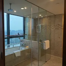 This is the tallest building in Chancheng, and I was on a pretty high floor this time. Although it shares a building with office spaces, the separate elevators provide a good sense of security. The hotel's facilities are quite comprehensive, and they cater to a lot of international guests. The lounge bar on the 51st floor is quite nice, but the chairs and floor were a little dirty. I had hoped that as an international hotel, they might offer a bit more in terms of 'special occasion' services, especially for preparing a birthday surprise. I had some expectations but was ultimately a little let down. Overall, the room was great, and their eco-friendly practices are clearly well-implemented. The front desk staff were also very patient and thorough in explaining everything, which was much appreciated.