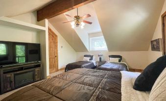 Bedroom with 2 twins and a queen (fireplace, TV and walk out patio)