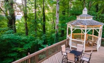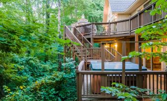 Step outside to enjoy the mountain air on a spacious wraparound deck with tree views. Unwind in the private hot tub, grill dinner, or relax under the stars. The wooded setting is quiet and peaceful, perfect for morning coffee or an evening soak.