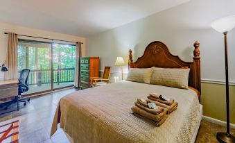 We welcome up to two well-behaved dogs with prior approval. A $75 pet fee applies per pet. The forest surroundings are great for walks, and the deck offers a shared space to relax with your pup.