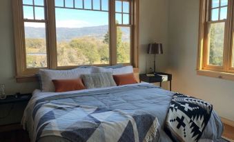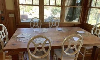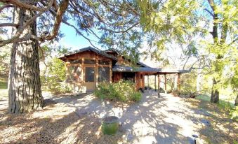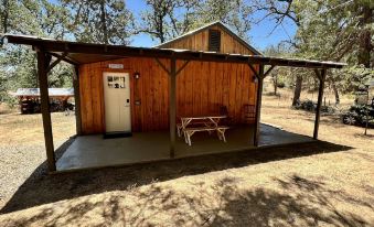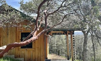 The Main House is at the top of the property and has 3 bedrooms, a laundry room, full kitchen and a full bathroom (bathroom 1 - please note there is only 1 bathroom at the main house). There is a large front patio with Adirondack chairs and the back patio has a large dining table with stunning views of the Sierras. There is also a Wisteria patio off the Sun room (bedroom 3) with seating. In the backyard, there is a fire pit with Adirondack chairs and handmade wood benches. Sleeps 6-8.