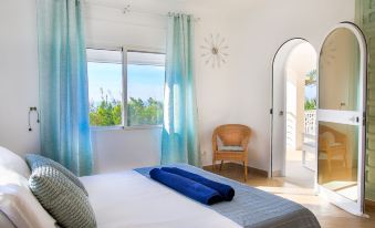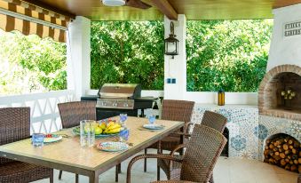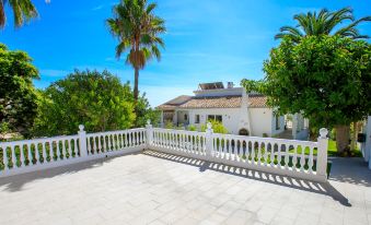 3 km from Nerja: There are 2 cameras oriented towards the outside entrance for your safety and he safety of your vehicles. Large, beautiful, comfortable villa "Aries", surrounded by trees. 3 km from the centre of Nerja, residential area (villas), 3 km from the sea, south facing position. Private: large, well-kept terraced garden with wildlife garden and trees, natural garden, lawn for sunbathing, swimming pool angular (10 x 5 m, depth 100 - 175 cm, seasonal availability: 01.Jan. - 31.Dec.). Outdoor shower, parking (for 2 cars). Supermarket 500 m, shopping centre 19 km, restaurant, bar, café, pub garden 150 m, bus stop 100 m. Sports harbour 17 km, marina 17 km, golf course (18 hole) 24 km, tennis 2 km. Nearby attractions: Frigiliana, Castillo de Almuñecar, Acantilados de Maro, Museo de Nerja, Museo de Miel de Caña, Cuevas de Nerja. Well-known ski regions can easily be reached: Sierra Nevada. Hiking paths: Sierra Tejeda, Sierra Almijara, Las Alpujarras. Please note: car recommended. The owner does not accept any youth groups. Loading and unloading of baggage is possible at the holiday house. Motorway close by 15 km from the property. "Aries", 6-room villa 200 m2 on 2 levels, south facing position. Object suitable for 8 adults + 1 child. Spacious and bright, practical and comfortable furnishings: living room with digital TV, international TV channels, wood-burning stove, air conditioning and forced-air heating. Exit to the patio, to the swimming pool, south facing position. 1 room with 1 french bed (160 cm, length 200 cm), bath/shower/bidet/WC (private) air conditioning, fan and forced-air heating. Exit to the patio, to the swimming pool. Large kitchen (1 hot plate, oven, dishwasher, 2 ceramic glass hob hotplates, 2 induction hot plates, toaster, kettle, microwave, freezer, electric coffee machine) with bar, dining table, digital TV. Sep. WC. On the lower ground floor: living/dining room with dining table, digital TV, air conditioning, fan and forced-air heating. Exit to the patio, to the swimming pool. 1 room with 1 french bed (160 cm, length 200 cm), bath/WC, air conditioning, fan and forced-air heating. 1 large room with 1 sofabed (90 cm, length 190 cm), 1 french bed (160 cm, length 200 cm), bath/bidet/WC, air conditioning, fan and forced-air heating. Exit to the patio, to the swimming pool. 1 room with 2 beds (90 cm, length 190 cm), fan. Open kitchen (4 hot plates, oven, dishwasher, toaster, kettle, microwave, freezer, electric coffee machine) with dining table, air conditioning and forced-air heating. Exit to the patio, to the swimming pool. Shower/WC. Large terrace, large patio, large garden, lawn. Terrace furniture, barbecue, deck chairs (6), sitting area. Very beautiful panoramic view of the sea and the mountains. Facilities: washing machine, iron, mosquito net, children's high chair, baby cot for up to 2 year olds, hair dryer. Internet (WiFi, free). Garage on the property (2 cars). Please note: suitable for families. Private entrance, smoke alarm, fire extinguisher. The pool mentioned in the description is for private use. Completely private and isolated pool. VTAR/MA/04263