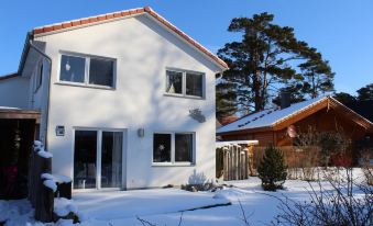 Our holiday home Boddensonne is centrally located yet away from the hustle and bustle of Zingst. The Baltic Sea beaches of Zingst and Prerow are just minutes away by car or bike. Attractions like Stralsund, the Erdbeerkarl theme park, and the open-air museum in Klockenhagen are also nearby. Former Chancellor Merkel recently inaugurated a new penguin enclosure at the Marlow bird park.