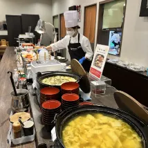 The hotel is conveniently located 15 min away from Hakata Station. It has a nice onsen, and provides many refreshments for free at different times of the day eg ice cream, Yakult and ramen. The breakfast spread is good, and the food is delicious.