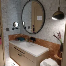 Check in easy and fast. The room is clean and all the furniture are new and work well. No problems here. The staff is professional and efficient