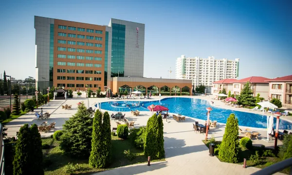The Ramada-Plaza Ganja hotel is located not far from the city centre and many major tourist attractions. We are convenient for all main motorways into the city. Our hotel is on the opposite side of Ganja Olympic Sport Center and looks out to Ganja Shamkir Highway and also offers free shuttle services to and from the airport for foreign guests.