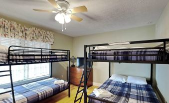 4 bedrooms: 4 single beds 1 queen bed and 2 king beds | 1 living room