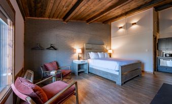 Find comfort and convenience in this King retreat. Equipped with a kitchenette, Smart TV, and a luxurious bathroom with walk-in shower and quality bath products. Walk right out to the deck where you have two chairs to start and end your day full of mountain lake adventures.