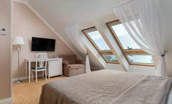 A four-star hotel in Gelendzhik on the first coastline. The Dolphinarium is 1 km away, and the Golden Bay Water Park is 3 km away. Novorossiysk is 29 km away, and Divnomorskoye Village is 10 km away. Gelendzhik Airport is 4 km away.