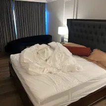 Not sure if this is a high demand, but the property is beautiful yet the TV doesn’t work. We checked in pretty late so we didn’t want to bother the concierge the next day you requested a separate room because we just didn’t want somebody to come in to fix the TV and the room was super tiny for a king bed Anyway it was accommodated but we were placed in a further room now the property is huge. You have to walk a lot. It’s it’s nice at the same time a tedious task when we got to the other room due to the event and lack of communication from the front desk I was told my car would be towed unless I moved it behind you When I booked The room I was told that parking is free. I was incredibly frustrated, fearful for my property, which is my car being threatened to be towed. I feel that that communication could’ve been better or the bell person could just come and take my keys to move the car, but you just don’t want to experience that level of frustration when you are staying as a guest in a hotel I mean this was a first for me incredibly frustrating and that’s not something that I will be doing by staying here again at all. Lastly, when I checked out, the front desk was not apologetic did not recognize my frustration. There was no level of courteous. They were more focused on their events happening rather than the guests in the hotel so I would not recommend staying at a hotel oh by the way, this was our treat for a our post wedding reception. The staff besides the midnight to late night staff, is utterly incompetent. Also no room service when they have a Resturant on site lol