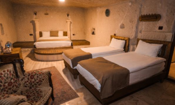 My boyfriend and I arrived at the hotel a little after 1 AM. It was raining heavily that night. The hotel is about a ten-minute walk from the center of Göreme. The hotel itself was very warm, and the room facilities were great. On our last day, our flight was canceled. I especially want to commend the front desk staff, Talha. He was incredibly helpful. Since our phone numbers were from the EU and couldn't make calls, we approached Talha, and he spent over 20 minutes patiently calling for us. He is highly educated and went above and beyond to help us solve our problem. Later, we asked him to call customer service to rebook our flight because our English isn't very fluent, and he patiently communicated with them on our behalf. Honestly, Talha is the nicest person I've met in Turkey.