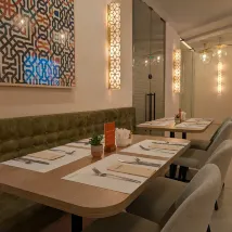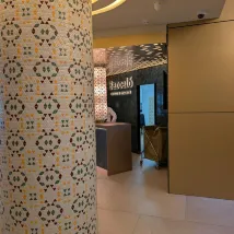 Lobby: The hotel lobby boasts modern decor. The restaurant, designed in an Arabian style, features white walls and intricate carvings, offering a beautiful and refined aesthetic.