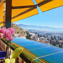 Location — On the hill, 10 min walk to the Alhambra Palace. If you fancy a short morning stroll in the same natural environment that surrounds the monumental complex, it should serve the purpose. Rooms on the city side have good views overlooking the Granada landscape, but prices are also much higher.