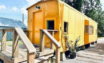 The Yellow Caboose is a highlight at the Train Wreck Inn - a retro train motel in Grand Coteau, LA! Vibrancy and efficiency make this unique stay on a retired caboose unforgettable.