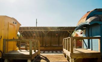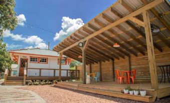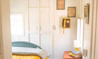 Inspired by filmmaker Wes Anderson’s infamous color palettes, this space is complete with a record player, antique glassware, and a custom kitchen. Enjoy our courtyard’s hammock and seating areas, or take a stroll to the cafe and shops. The Yellow Caboose is ready to take you on your next adventure in style.
