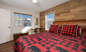 The living room boasts an open layout with a flat screen TV, gas fireplace, hardwood floors, cozy furnishings and ample windows to soak in the mountain scenery from this second-floor unit. A twin trundle bed is available for additional sleeping space.