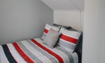 My mom and two teenage daughters and me were traveling and this was a good place to stop on our journey. The double bed and pillows were comfortable. The futon/pullout was not really meant for sleeping. There were not linens for the futon or pillow cases for the extra pillows. The double bed did have pillowcases and sheets. The keyless entry was smooth and worked as expected. The kitchen was small but adequate. It was not a full size fridge. But was a full size oven. It satisfied our needs for the evening and morning. The bathroom was really tight. We did not use the tub/shower due to it being so small. There were only towels for 2 people. Overall, we were happy with our stay, though very small, but a great use of an upstairs unit. The air conditioners worked well. It really is meant for only a single or couple to sleep in the bed.