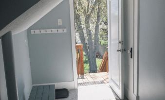 Great 1 bedroom that sleeps 4 (2 adults, 1 or 2 kids) Great for a small family, or couples getaway. The upper-level unit, has its own smart lock entrance, full kitchen, and living space. Equipped with smart tv, pullout sofa, double bed, and free parking on site. Relax by the fire pit in the evening.