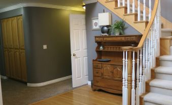 We had our two boys and their families join us for a family vacation. The property provided a lot of space with a nice, multilevel backyard. The lowest level is a two bedroom home. The upper levels have 4 bedrooms, three gathering spaces, a kitchen/dining space, a laundry room, a shared bathroom, and an amazing master suite that exits to the top level of the back yard. We had the privilege of watching a couple of young bucks one evening and a couple of other times during our stay. One of the upstairs bedrooms has a sort of loft area that our three young granddaughters enjoyed thoroughly. We also appreciated the spices and other items provided by previous guests.