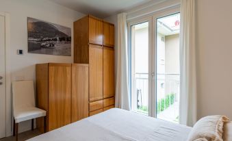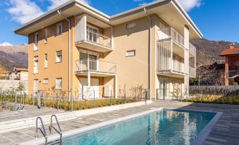 Modern, comfortable residence "Laricola", built in 2023. 2 houses in the residence. 11 apartments in the residence. In the centre of Gravedona 2.5 km from the centre of Domaso, 52 km from the centre of Como, in a sunny position in the residential district, 200 m from the lake, road to cross. For shared use: swimming pool angular fenced (9 x 4 m, depth 140 cm, seasonal availability: 01.Jun. - 30.Sep.). Outdoor shower, pool maintenance by the owner/gardener. In the house: lift, air conditioning, heating available only from 15.Oct. - 15.Apr.. Public parking 10 m on the road. Supermarket 400 m, restaurant 100 m, bar, bakery 100 m, pedestrian zone 100 m, bus stop "C10 Como-Menaggio-Colico" 800 m, railway station "Colico" 17 km, ferry "Menaggio" 18 km, sandy beach "Serenella", pebble beach 650 m, outdoor swimming pool. Marina 600 m, golf course (18 hole) 21 km, sailing school 350 m, tennis 350 m, sports centre 350 m, children's playground 400 m. Nearby attractions: Chiesa Santa Maria del Tiglio-Gravedona, Palazzo Gallio-Gravedona, Villa Carlotta-Tremezzo, Bellagio, Menaggio, Varenna. Well-known lakes can easily be reached: Lago di Mezzola. Hiking paths: Monte Duria, Valle del Livo. Please note: Hydronic cooling system with fan-coil, powered by a heat pump. To respect the environment, the temperature does not drop below 24 degrees. "Luna", 3-room apartment 80 m2 on 1st floor. Beautiful and tasteful furnishings: open living/dining room with dining table and TV (flat screen). Exit to the balcony. 1 double bedroom. 1 room with 2 beds. Open kitchen (oven, dishwasher, 4 induction hot plates, toaster, freezer, electric coffee machine). 2 showers/bidet/WC. Air-conditioning, underfloor heating. Heating available only from 15.10. to 15.04. Natural stone floors. Balcony. Balcony furniture. Partial view of the lake, the mountains, the swimming pool and the resort. Facilities: washing machine, iron, hair dryer. Internet (WiFi, free). Garage on the property (1 car). Please note: non-smokers only. Smoke alarm, fire extinguisher. IT013249C2FQWQ9MDQ