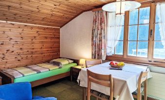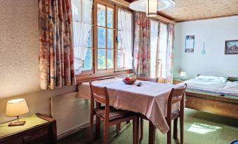Beautiful, cosy apartment house "Chalet Marie Rosa". In the district of Schwendi, 2.4 km from the centre, in a sunny position, south facing position. For shared use: garden, lawn for sunbathing. Barbecue. In the house: sauna (extra). Solarium (extra). Storage room for skis, central heating system. Linen change (suppl. charge extra). Towel change (suppl. charge extra). In Winter: please take snow chains. Parking at the house. Shopping centre 2.4 km, restaurant 2.4 km, bicycle rental 2.6 km, bus stop "Rothenegg" 1.5 km, railway station "Schwendi" 300 m, outdoor swimming pool 2 km, indoor swimming pool 2.6 km. Golf course (9 hole) 4 km, tennis 3.5 km, minigolf 2.8 km, sports centre 2.6 km, mountain railway 2 km, gondola lift 1.8 km, ski rental 2 km, cross country ski track 300 m, children's playground 2.6 km. Well-known ski regions can easily be reached: First 2.8 km, kl. Scheidegg/Männlichen 2 km. Well-known lakes can easily be reached: Thuner-/Brienzersee 15 km. Please note: the owner lives in the same residence. Additional accommodations can be booked. 1-room apartment 30 m2 on 1st floor, south facing position. Practical furnishings: living/sleeping room with 1 bed (90 cm, length 200 cm), 1 double bed (2 x 90 cm, length 200 cm), satellite TV and radio. Exit to the balcony, south facing position and west facing position. Kitchenette (2 hot plates, electric coffee machine). Shower/WC. Small balcony, south facing position and west facing position. Balcony furniture. Beautiful view of the mountains and Eiger. Facilities: Internet (WiFi, free). Parking at the house. Please note: non-smokers only. Maximum 1 pet/ dog allowed. Fire extinguisher.