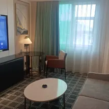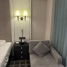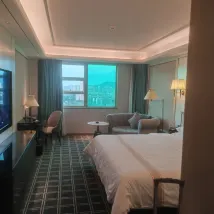 The hotel boasts a very convenient location, right near the high-speed rail station. The service was outstanding! The front desk even offered complimentary freshly ground coffee. When my initial room later smelled of smoke, they promptly moved me to another one. The south-facing room was much, much better!