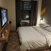 The hotel is about 700m from Huaguoshan Park Station, Exit A1. Nearby, you'll find a Luckin Coffee and Miaoxi Coffee (a cat cafe), both reasonably priced and worth checking out. The hotel's overall environment was decent, but cleanliness was only average. They only provided disposable slippers, not the more practical rubber ones, which made showering a bit inconvenient. On the plus side, the hotel offers complimentary breakfast, and we received two breakfast vouchers.