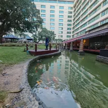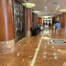 The hotel's entrance area is also very spacious, featuring a grand fountain and impressive water features. Thumbs up!