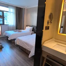The hotel room was clean and tidy, and there was a robot food delivery service, which was very convenient. The hotel staff were also very welcoming. When they saw that we brought our children, they gave us extra water when we left. Thank you very much! I will consider staying here again next time I visit Guangzhou.