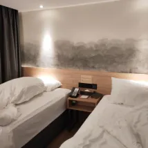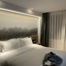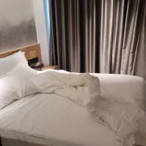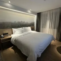 Initially, upon checking in, I discovered a leak in the ceiling. When I reported it to the front desk, they were very proactive in handling it and immediately upgraded our room. The front desk staff member was also incredibly thoughtful and patient. Overall, the facilities are quite new, the bedding was clean, and the room was free of any unpleasant odors, which was excellent. The only minor drawbacks were that the pillows were too high, and the final stretch of road leading to the hotel was a bit hard to find and quite dark.