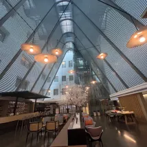 Great location, modern decor and rooms. Everything needed was in the room. Water, toothbrushes, slippers, robes, etc. Breakfast was included. There is a gym and laundry machines to use, and a nice little play area for toddlers. They have workspace desks that I saw a lot of people taking advantage of.