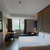 The hotel boasts excellent facilities, and we were even upgraded to a better room. The lobby features a charming 'Zhuju' (bamboo reading corner) where guests can borrow books for free. Our room was fresh, spotlessly clean, and provided a truly comfortable stay. All amenities were well-appointed, and the shower pressure was fantastic. The front desk staff were incredibly helpful, assisting us with a late check-out and even offering complimentary tea upon our arrival. The bedding was exceptionally comfortable, making for a truly wonderful experience overall.