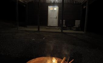 There are 6 cabins sharing a large firepit, and the owner sets the fire around 7:30pm. Location is very remote but the wifi was outstanding! We were sasquatch hunting and didn't see any, but heard lots of strange animal sounds at night. It was cool to hear the coyotes while sitting around the fire. We didn't bring our dogs but it's very nice that the owner allows that. Cabins are themed and very well done. We'll definitely be back!