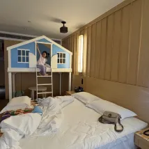 This was hands down the best place we stayed during our trip to Guilin! The staff were incredibly friendly, reminding us about the complimentary afternoon tea and supper. Downstairs, there's also a kids' playground, a carousel, a claw machine, and even traditional ethnic costumes available for photos! The bathroom design in the room was very well thought out, featuring two sinks and a bathtub. Our kids absolutely loved sleeping in the treehouse; they felt so secure there. They didn't want to leave at all, wishing they could stay and swim upstairs. There were just too many fun things to do! We even left behind a swimsuit, but the front desk lady was incredibly patient and even mailed it back to us! The service was truly exceptional!