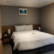 I heard it is the best hotel in Gumi. It is very clean, without the smoky smell like domestic hotels. The food in the hotel is not very delicious, all of it is white food, mostly cold food, really not as delicious as the food in domestic hotels. The milk is cold, so is the soy milk. The Korean food around the hotel is either barbecue, fried chicken, cold noodles or sushi rolls.