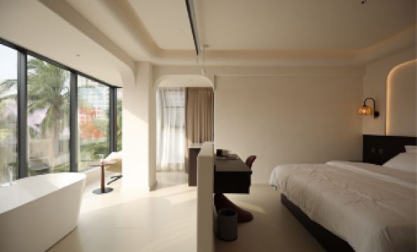 After staying at a hotel near Qilou Old Street in Haikou for three days, I decided to switch to a different area today to explore, so I chose this newly opened guesthouse near Hainan University. I was actually quite impressed! The room is very large, new, and clean. The mattress is memory foam, which some people might like, while others might find it less comfortable – it really depends on personal preference. The owners are incredibly warm and welcoming, which is a big plus.