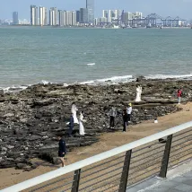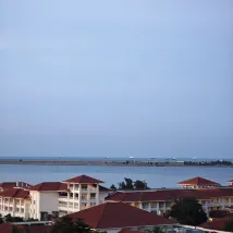 I liked the hotel! The linen and towels are snow-white! There are disposable toothbrushes with toothpaste, a comb, rubber and disposable slippers. 2 bottles of water were brought every day, tea and coffee in bags. The staff is very responsive, at my request they ordered an adapter for sockets, they also helped call a taxi. It is located about 40 minutes from the old city, if you get there by tourist bus (red double-decker). The stop is opposite the hotel (route 3). The cost is 5 yuan / day, you can get off at stops and get on again with the same ticket. The choice of food is not very good. On the right there are 2 small shops. And a cafe where you can eat cheaply and tasty, but it opens after 5 pm. Breakfasts are good: I especially liked the baked cucumbers and turnips. The beach is across the road and the hotel where you can have lunch. Clean sand, very few people and a long beach line - for me this was the most important thing! To the left of the park (the embankment along the river to the beach), there is a cafe (live flowers inside) with very tasty and expensive cakes. I paid 70 yuan for a cake with tea.