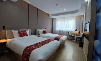 The hotel is located in the DaBeiCha homestay area, near the mountains and rivers, the hotel is simple and fashionable, clean and tidy, noisy take quiet high-end B&B; There are children's skateboarding area and talent exhibition area outside the hotel. You can fly yourself in the skateboarding area. You can also make snowmen and snow sculptures in the talent exhibition area to show your talents and make snow treasures in your dreams