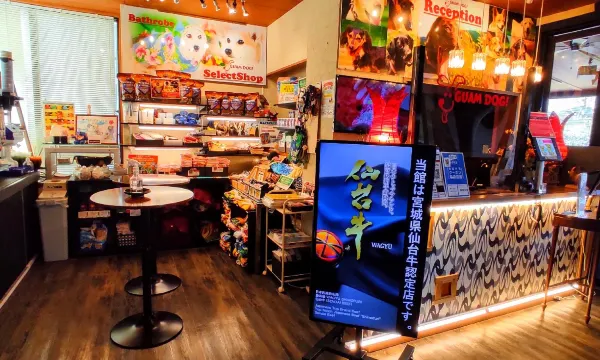 足3本の大型犬を抱っこしてお部屋まで連れて行ってもらいました お部屋もお風呂も古いですが、とにかくワンコファーストのお宿です チェックインをすると撮影ブースに案内され ワンコの写真をオーナーが撮ってくれます 撮影してくれた画像をプロジェクターで館内に映してくれます ワンコの画像をラミネート加工してカレンダーも作ってくれます 館内にはワンコに必要なアメニティが沢山あります お宿からそのままドッグラン直結なので便利でした お夕食はしゃぶしゃぶで、お腹いっぱいでした 朝食もとても美味しかったです 帰りには、自分たちの携帯でオーナーがパシャパシャ撮ってくれました 強羅の温泉は白濁していて、独特なお湯ですが ツルすべで気持ちいいです ありがとうございました
