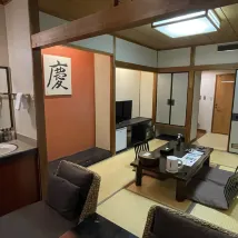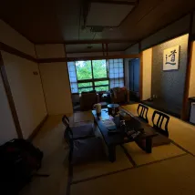We stayed in a Japanese-style room, where we had to move the table and set up the bedding ourselves. There was a tea ceremony set in the room, but no water provided. The service felt rather poorly thought out for the price. Overall, I wasn’t very impressed. The private onsen costs 3,000 yen and must be booked in advance at the reception — it’s not possible to do it through their online system. The service at the hotel is fine — everything is just as described in the reviews.