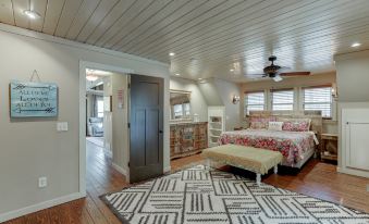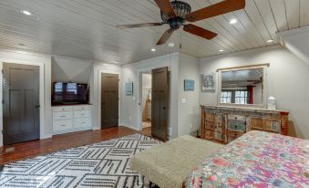 Our A-frame farmhouse has been upgraded with modern interiors for a comfortable and stylish stay. Outside, you can enjoy the company of our two friendly horses, relax by the giant fire pit in the horse pasture, or take a stroll to admire the scenic bridges and streams. Please note that there is a 5% tourist fee and a 7% sales tax added to your booking, and this goes directly to the state and county.