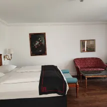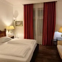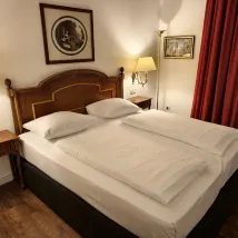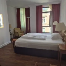 Zuerst mal zum Zimmer. ein stark abgenutztes Parkett, im Badezimmer war die Duschhalterung locker. Am nächsten Morgen um 7:15 Uhr klopft es an der Zimmertür, nachdem ich geöffnet habe kam die Frage wann wir gedenken auszuchecken. Wir haben doch bis 12:00 Uhr zeit dafür. Sind sie nicht vom Kegelverein? war die nächste Frage. Nein sind wir nicht! Tür zu ohne Entschuldigung. Um 8:35 Uhr , wir waren gerade am Anziehen, schließt eine männliche Person von außen ohne Vorwarnung einfach die Tür auf. Meine Frau saß mit freien Oberkörper auf dem Bett. Tür wieder zu ohne eine Entschuldigung. Also nicht noch einmal. Zu Hause stellten wir fest das wir ein kleines Kissen vergessen hatten. Auf Nachfrage wollte man es uns nachsenden zum Preis von 20,00€ . Ich hab dann lieber eine Person aus meiner Verwandtschaft gebeten das Kissen zu holen und mir zu senden