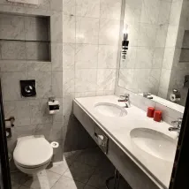 The location of the hotel is excellent, but the rooms had a bad odor. While the rooms themselves are spacious and nicely appointed, the unpleasant smell detracted from the overall experience. Additionally, check-in was problematic, as our room wasn't ready until 4:30 PM. On the other hand, they are strict about check-out times and charged extra for an additional hour.