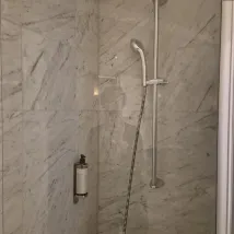 The location of the hotel is good. The room is large and the bed huge, and very comfortable, although I would rather have had 2 single beds as was travelling with my son. The bed only had one pillow and one single duvet despite the booking was for 2 people. We found another pillow and duvet in the wardrobe but I do feel the room should have been set up for 2 people. The free drinks in the fridge was nice, but the fridge was not cold, there was also no way to open the drinks but we asked at reception and they provided a bottle opener. The shower in the bathroom was broken so you had to hold it to shower as it did not stay in the holder. The bathroom was clean but did smell damp. There was chilled water, sweets and pastries to help yourself to at the reception. The check out was midday which is great but it was rather a shock at 11.55am when just finishing packing in the bedroom someone tried to enter the room with no knocking or warning, this really is not acceptable.