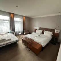 We really liked this hotel. Very convenient location: near the railway station. Friendly staff. A large room with comfortable beds, a coffee machine and, which was very important for us, a bathroom where we could relax after a tiring journey. A wonderful breakfast with a rich selection. The cook even made an omelet especially for us. We will be happy to come back here again.