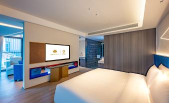 Located in the central district of Hangzhou, Huanglong, it integrates the local culture of Hangzhou and the historical legacy of the Wen San Street district, aiming to create a dedicated space for business people, tourists, and e-sports enthusiasts, combining business, tourism, competitive gaming, leisure, and socializing. The hotel has a total of 110 rooms, with 50 business rooms to meet the needs of business travelers, and 60 e-sports enthusiast rooms for Tencent e-sports fans. The e-sports rooms offer digital interactive experiences with e-sports themes, including a variety of e-sports theme rooms, an e-sports merchandise store, and a viewing area, as well as a series of e-sports digital IP content experience spaces. The hotel provides one-stop e-sports entertainment experiences for business, tourism, and e-sports enthusiasts. It also has an early breakfast restaurant, Chinese restaurant private rooms, a tea bar, a bar, a multi-function hall, and free parking, with a focus on providing localized service experiences.