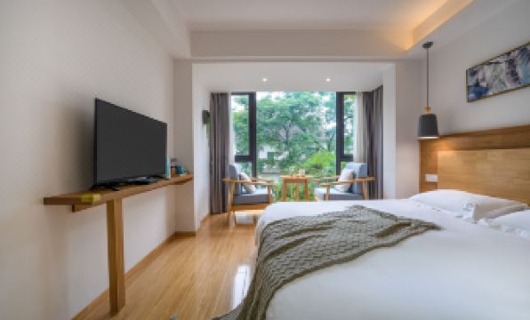 First off, the hardware is excellent. All rooms have large windows with mountain views, and from the fifth-floor rooftop, you get beautiful panoramic views of the surroundings. You can also walk to a nearby mountain; it's not too high, just a fifteen-minute climb. The property is located within a scenic area, and public transport is incredibly convenient, with direct buses to all the West Lake attractions. There are also plenty of great food options nearby. The owner's service is superb! They upgraded us to a room with a tea area and gave us lots of delicious snacks, even sharing their own personal tea stash. The best part is that the owner also lives on-site, which gave us a real sense of home and belonging while traveling. If I'm lucky enough to visit West Lake again, I'll definitely stay here!
