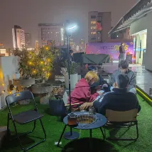 It's closed to metro exit A, and the bus stop is just right at the door! The staff are very friendly! It has many hanging spaces. Shared bathroom and toilet! People enjoyed this place as it has a roof, bar, studying area, make-up room, and lots of activities. It will be great to have a recycling bin.